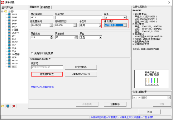 2. 根据接入的控制器选择对应的型号,通讯模式选择“WEB通讯”。